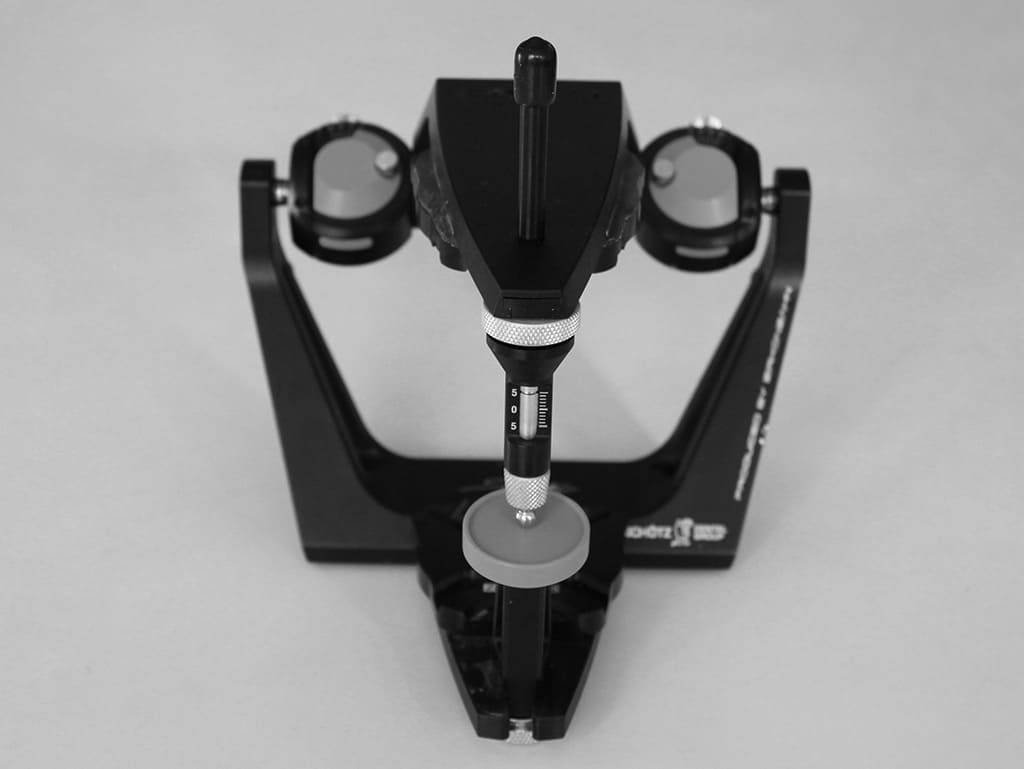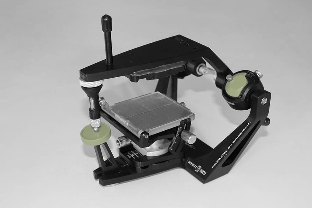 Daraufhin erfolgt die Montage dieses Funktions- bzw. anatomischen Konters am Vertikalschlitten des Vertikulators. Diese präzise Art der Montage dieser Konter ermöglicht die Herstellung perfekter patientenspezifischer Okklusalstrukturen. Da die Genauigkeit im 10-μm-Bereich liegt, entfallen bei der Eingliederungen intraorale Okklusionskorrekturen.